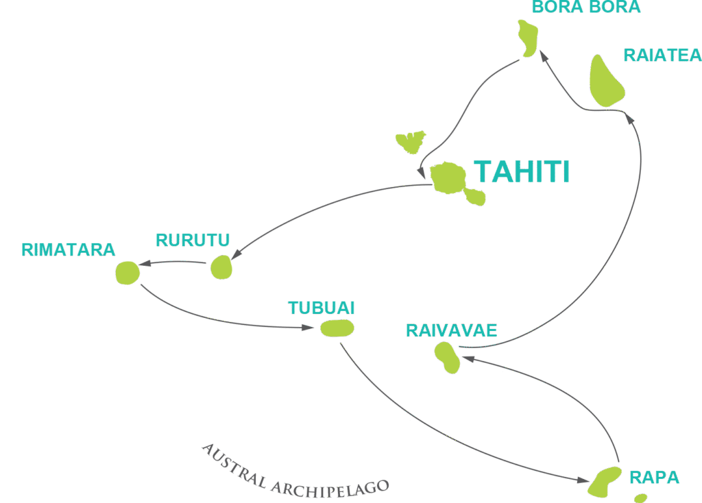 Aranoa will take you to discover the Austral Islands, a true haven of peace composed of five main islands: Rimatara, Rurutu, Tubuai, Raivavae, and Rapa.