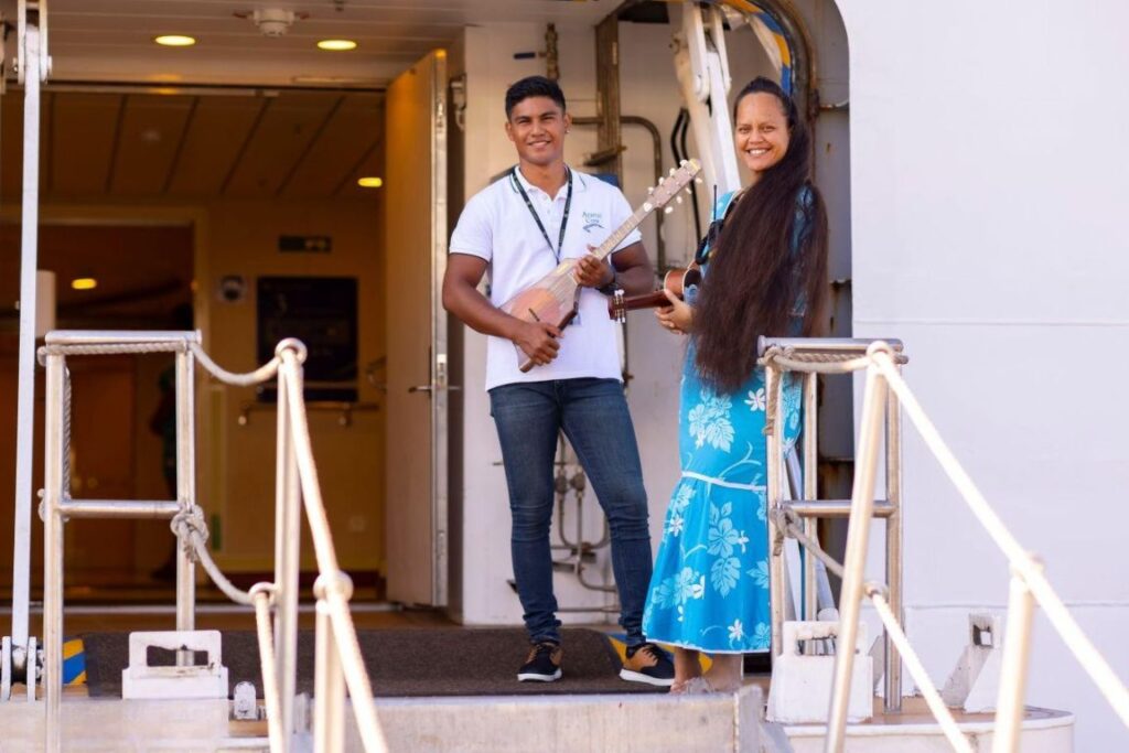 During the stopover in Atuona for the Marquesas Festival, passengers will experience a unique immersion in Marquesan culture. The morning will be punctuated by traditional dances performed by young people, a new feature of the festival, as well as the discovery of craft stands with demonstrations and visits to the island’s museums. At midday, the Kaikai Katahi will bring all guests together for a grand feast featuring culinary specialities from the different islands. In the evening, the festivities continue with performances of traditional dances performed by adults, offering an even deeper immersion into the Marquesan soul before the Aranoa departs by night.