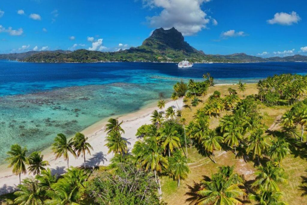 Watch from the decks as we approach and arrive at the largest atoll in French Polynesia, and the second largest in the world. You may spot playful dolphins greeting the ship as we enter Tiputa Pass, one of Rangiroa’s passes. Glass-bottom boat and scuba diving excursions are available (registration at reception). Scuba diving here is rated among the best in the world (certified divers only). If you decide not to visit, enjoy Rangiroa’s white sandy beach and translucent lagoon. At lunchtime, the Aranoa will set sail for the mystical island of Bora Bora.