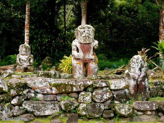 While the names Gauguin and Brel are inseparable from Hiva Oa, the soul of the island is to be found in the Puamau valley. At the archaeological site of I’ipona (also known as Lipona), every nook and cranny is an enchantment. Located at the foot of the Toea peak at the island’s northeastern tip, the site is home to several tiki. Among them is the largest tiki in Tahiti Et Ses Îles: Takaii, standing 2.57 metres high. You’ll also come across Makii Taua te Pepe, a recumbent tiki measuring 1.75 metres long and 1.20 metres high.